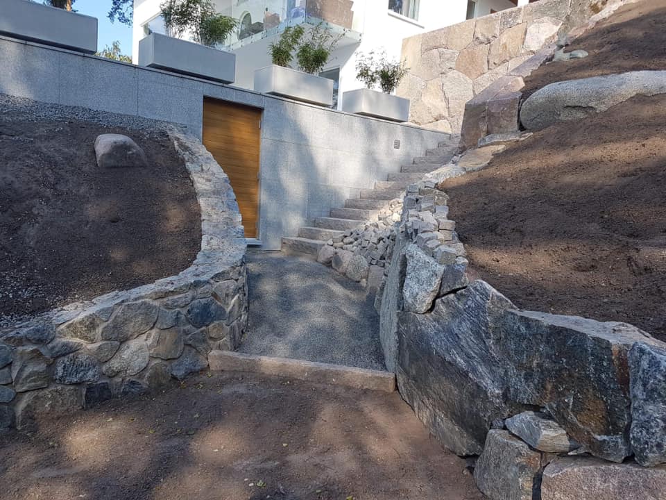 Vi erbjuder en komplett service för markarbeten, inklusive vatten och avlopp, plattsättning, dränering och murbygge.