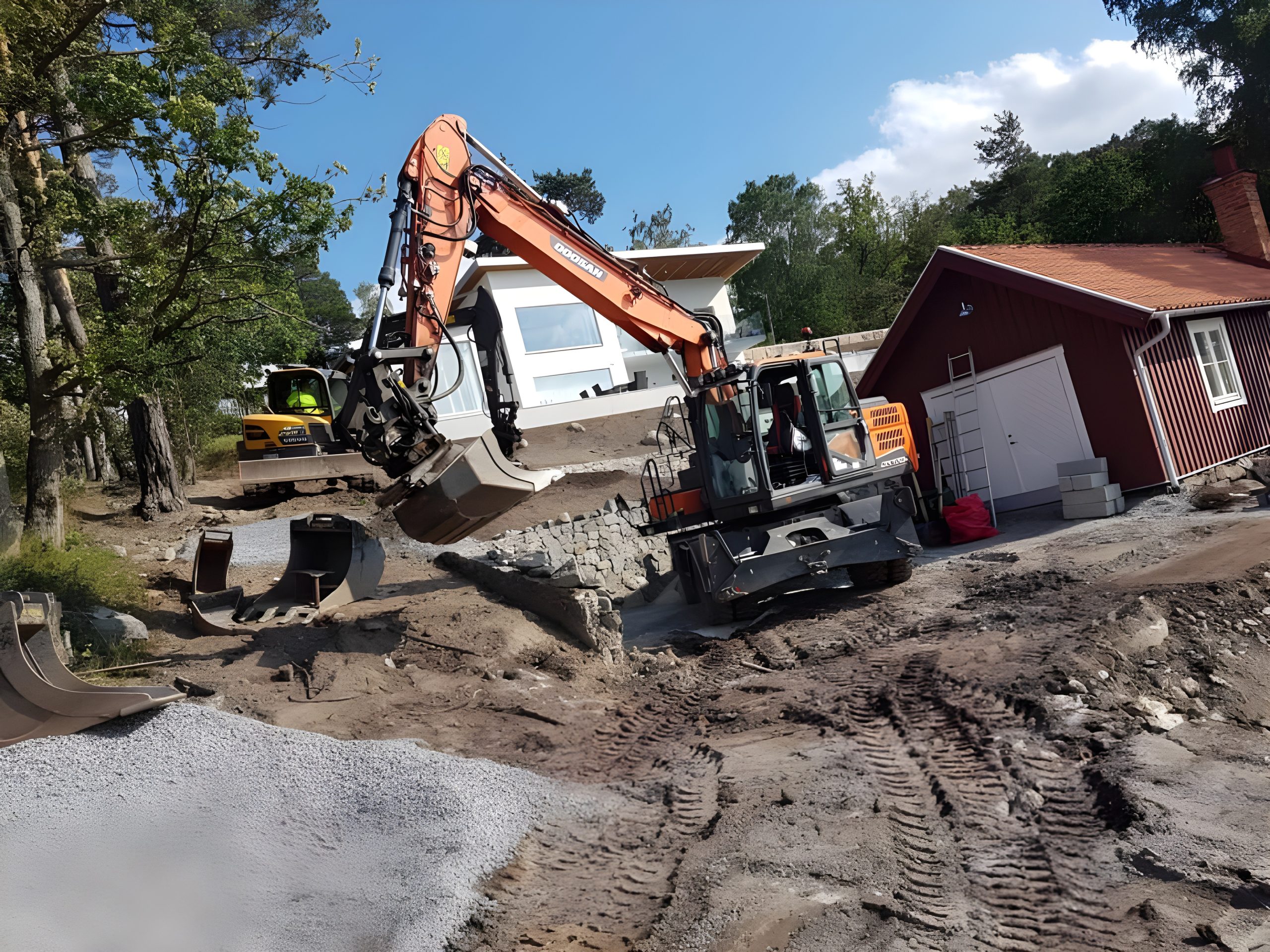 Precisionsschaktning för att forma terrängen enligt plan, möjliggör säkra och stabila konstruktioner och anläggningar.